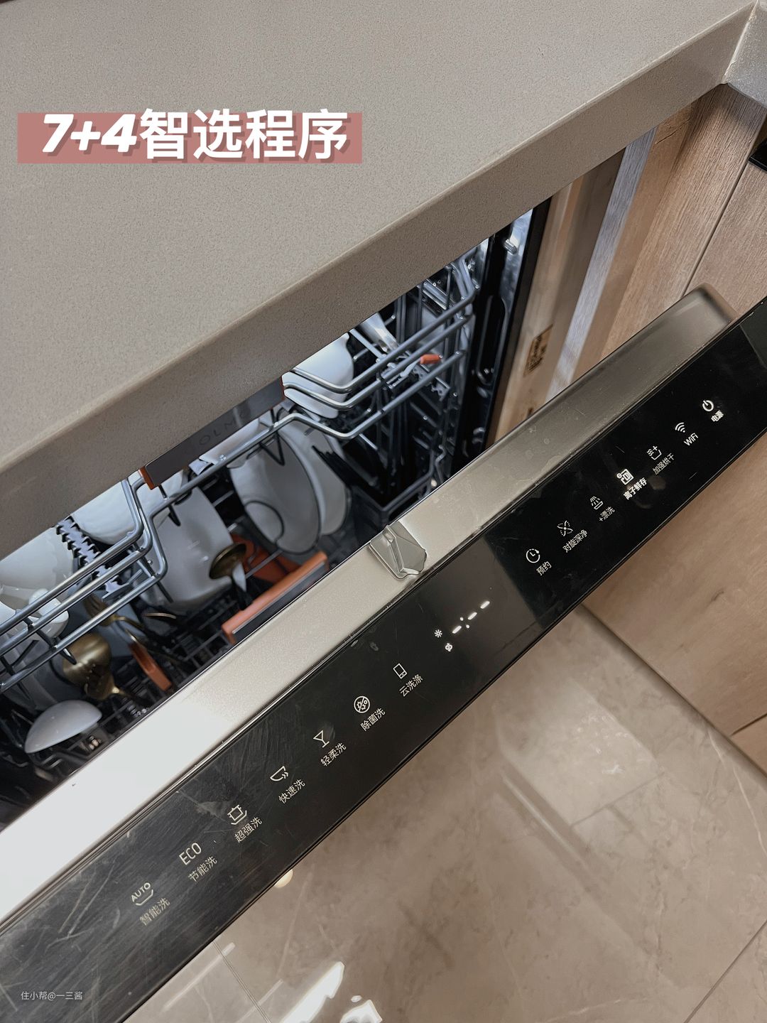 根据不同的洗涤需求他有7+4种洗涤程序,里面的智能洗会自动监测碗盘的脏污程度自适应合适的洗涤方式,最大程度节约水电提升效率~这点也很适合懒人哈哈哈