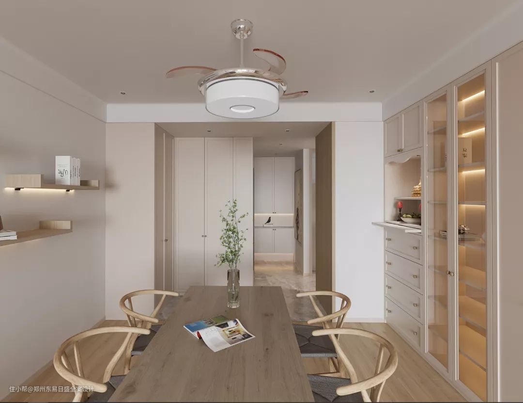 通过整面柜体的布置,满足了餐厅收纳和储物功能。