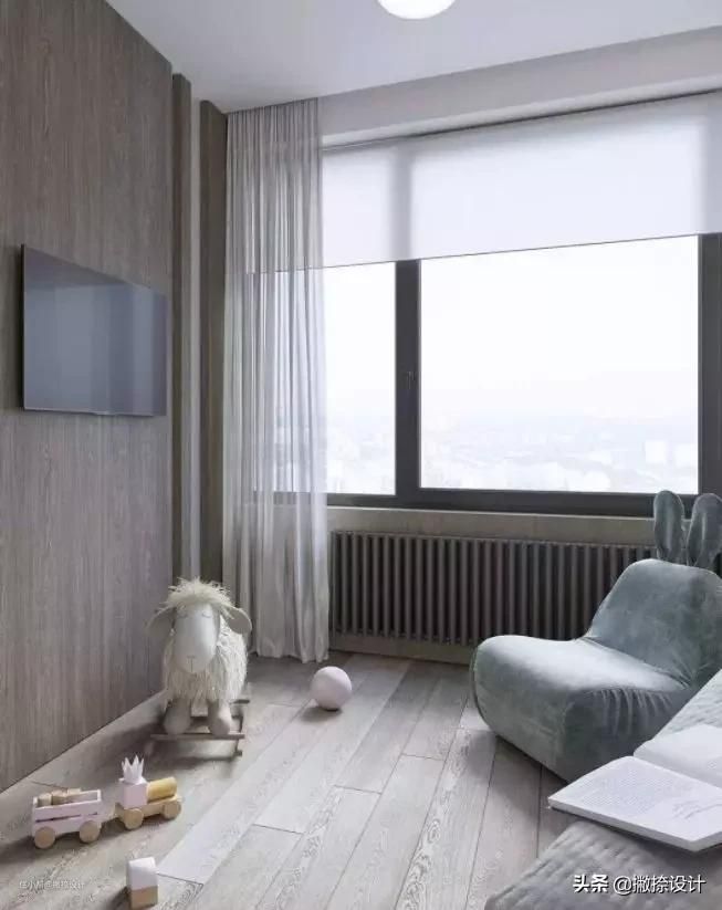另外,值得注意的是,尽量保留大面积留白的墙面,除了视觉上干净整洁之外,还能给日后的装饰留下余地,灰色是白色和黑色的混色,散发着一种理性和专业感,也是冷色调卧室装修中一种经常使用的色彩。