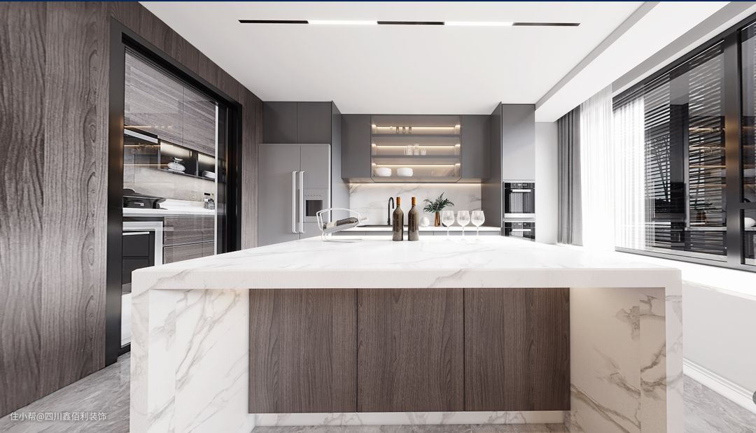 中西厨是精致派的标配,美貌与功能之间的双全平衡,柴米油盐的地气和雅人的情趣,皆在设计的呈现之中。
