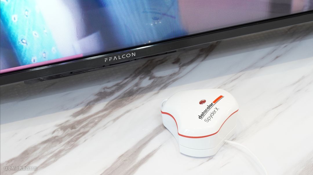 ▲条件有限,只能用测试电脑显示器所使用的红蜘蛛校色仪进行测试,难免会有稍大的测量误差,不过相信只要电视色域覆盖足够好,测试的结果也不会太差。