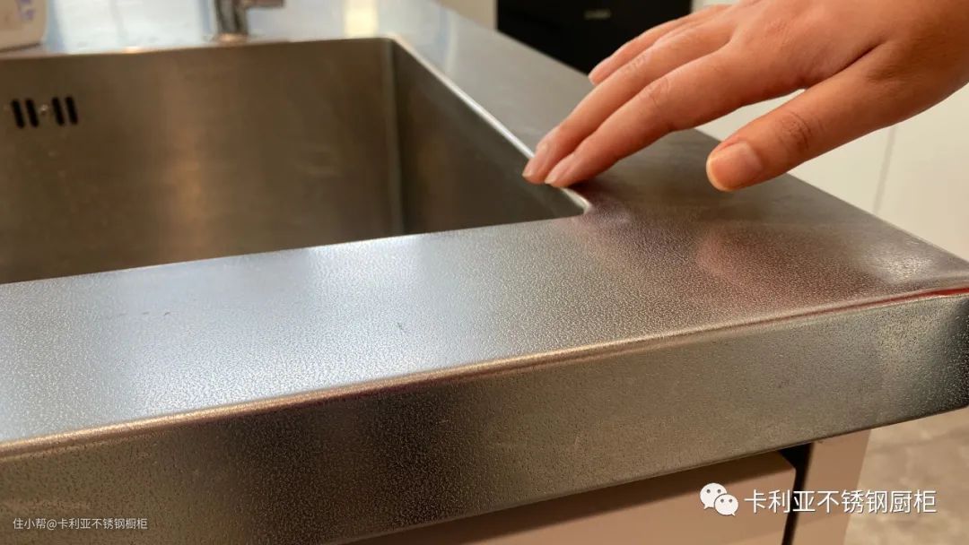整个不锈钢台面和中岛均采用一毫米耐刮划工艺,并配有一体无缝后挡水,且分别设置3D水槽和大单槽设计,没有缝隙不易滋生细菌且功能多样。