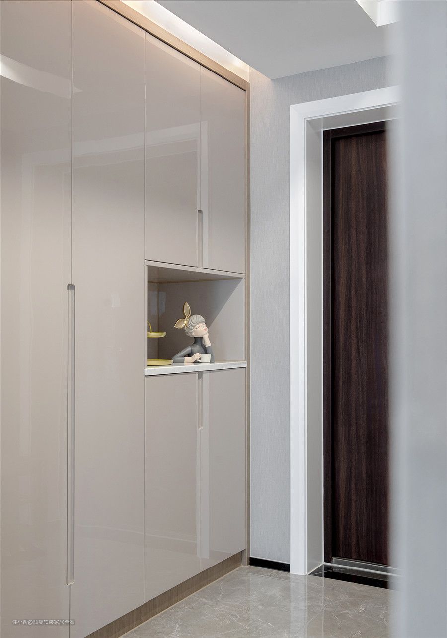 鞋柜摆设方案1.狭长形玄关 狭长形的玄关受限于宽度,如果将鞋柜放置在门的侧边,会占用空间宽度,可能就不好转身。为了保持开门及出入口的顺畅,鞋柜适合与大门平行摆放,这种方式需保证玄关的深度有120~150cm。