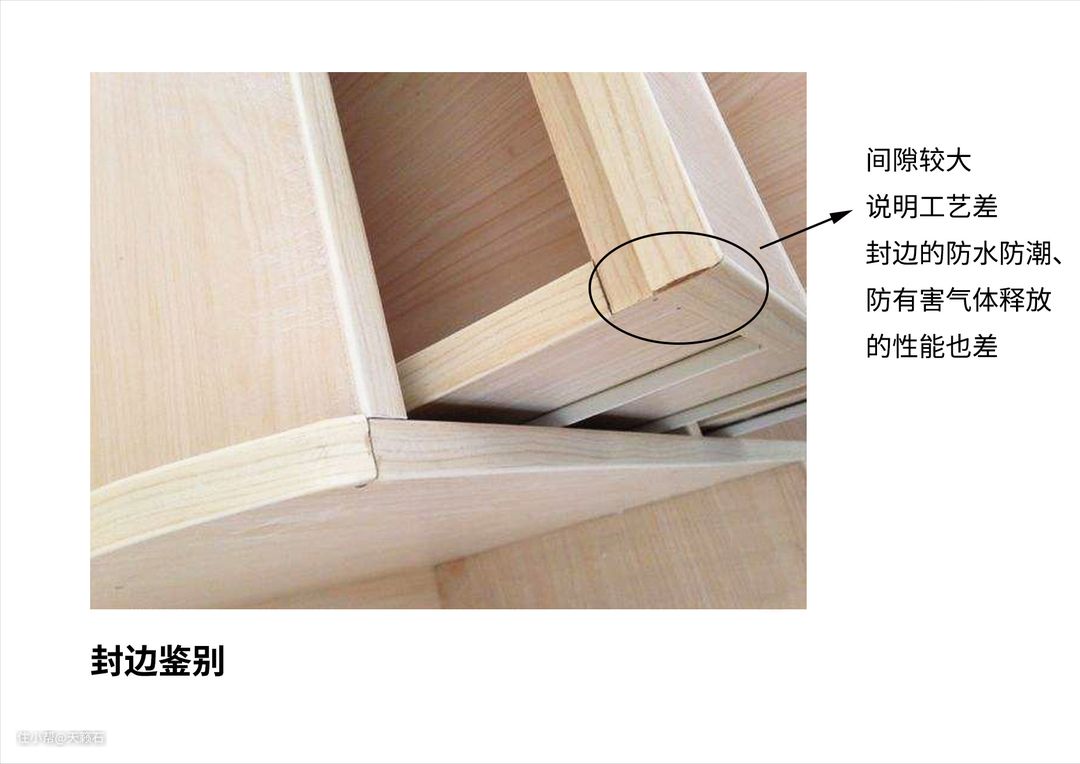 所以,封边这方面,普通家用就选择全EVA或者柜体EVA门板PUR的就好了。在店里要具体拿块样品看一看,同时结合销售所说来分辨他家的封边工艺。