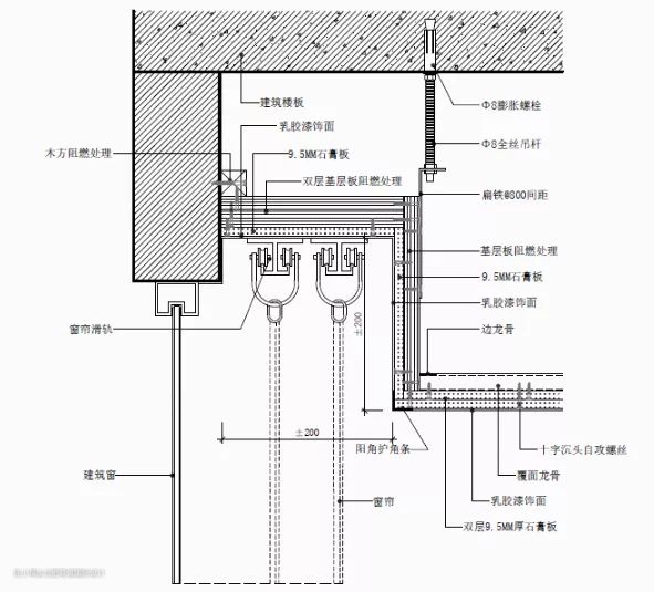 ※窗帘轨道的安装必须固定在底板龙骨上,确保牢固。