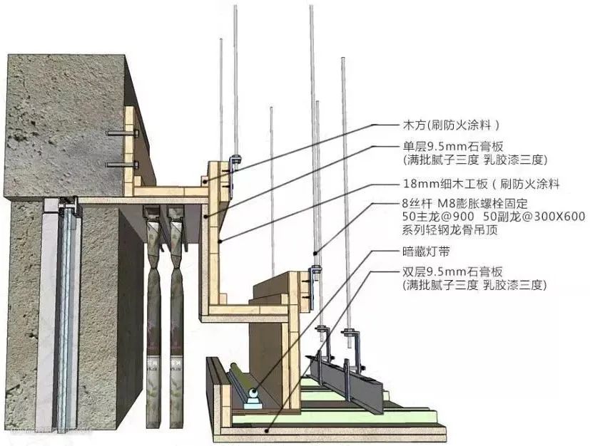 ※在一些设计中会在窗帘盒中增加灯带,需要我们在设计时就考虑到,并在施工时预留灯槽。