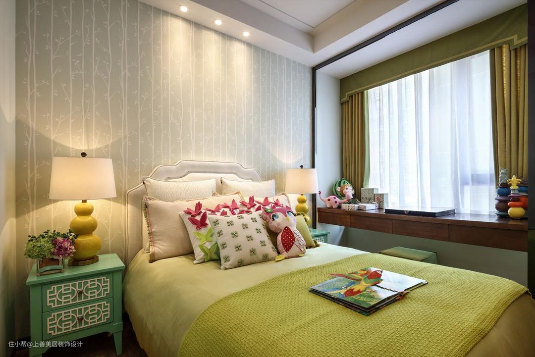 女儿房的飘窗则是做成了一个书桌,可以方便孩子在这里学习看书,这里的光线最好。