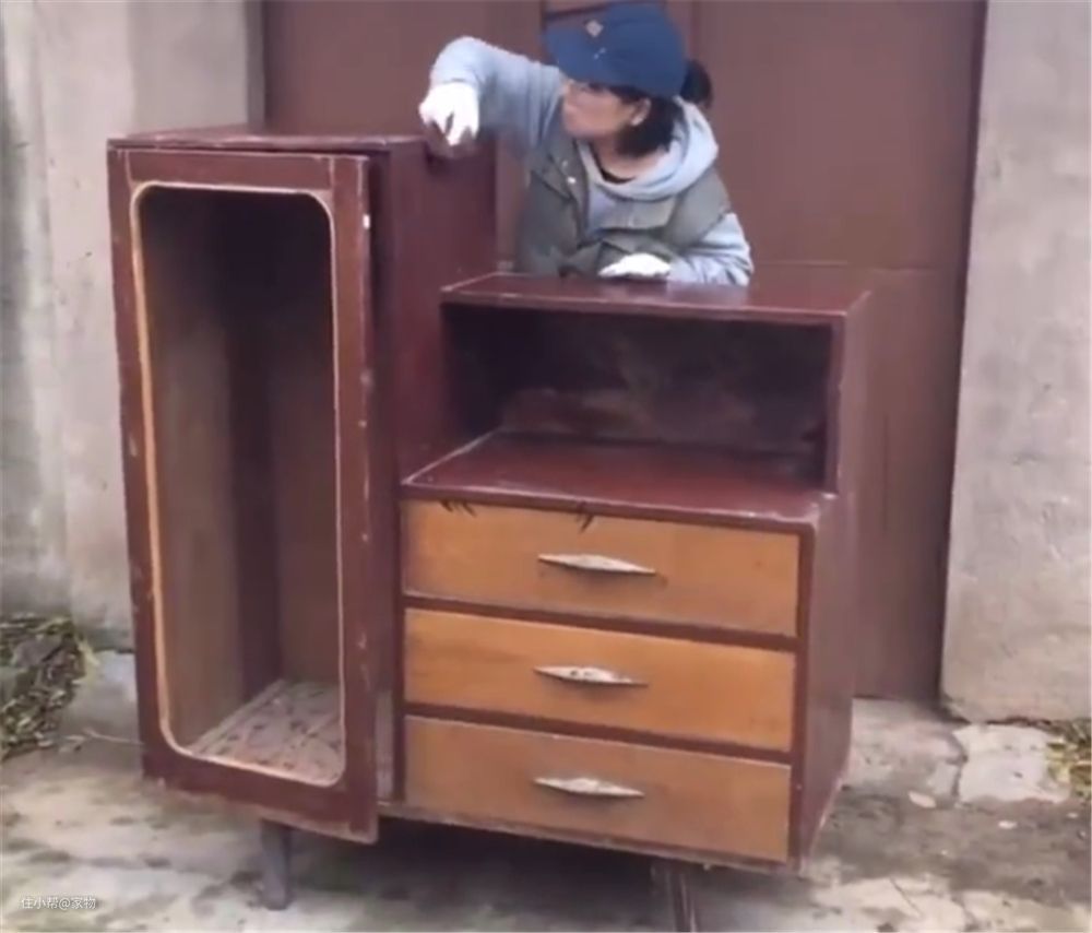 姑娘低价买下废旧木柜,亲自动手翻新成雅致小柜,网友:变废为宝