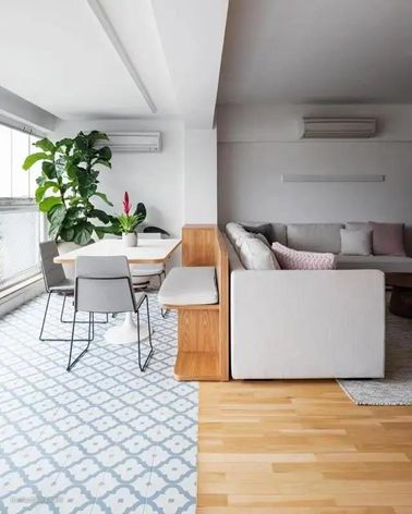 对于开放式布局的家,铺上小花砖,可以让各个区域形成视觉上的对比,起到划分空间的效果,各功能区域也能保持相对独立。