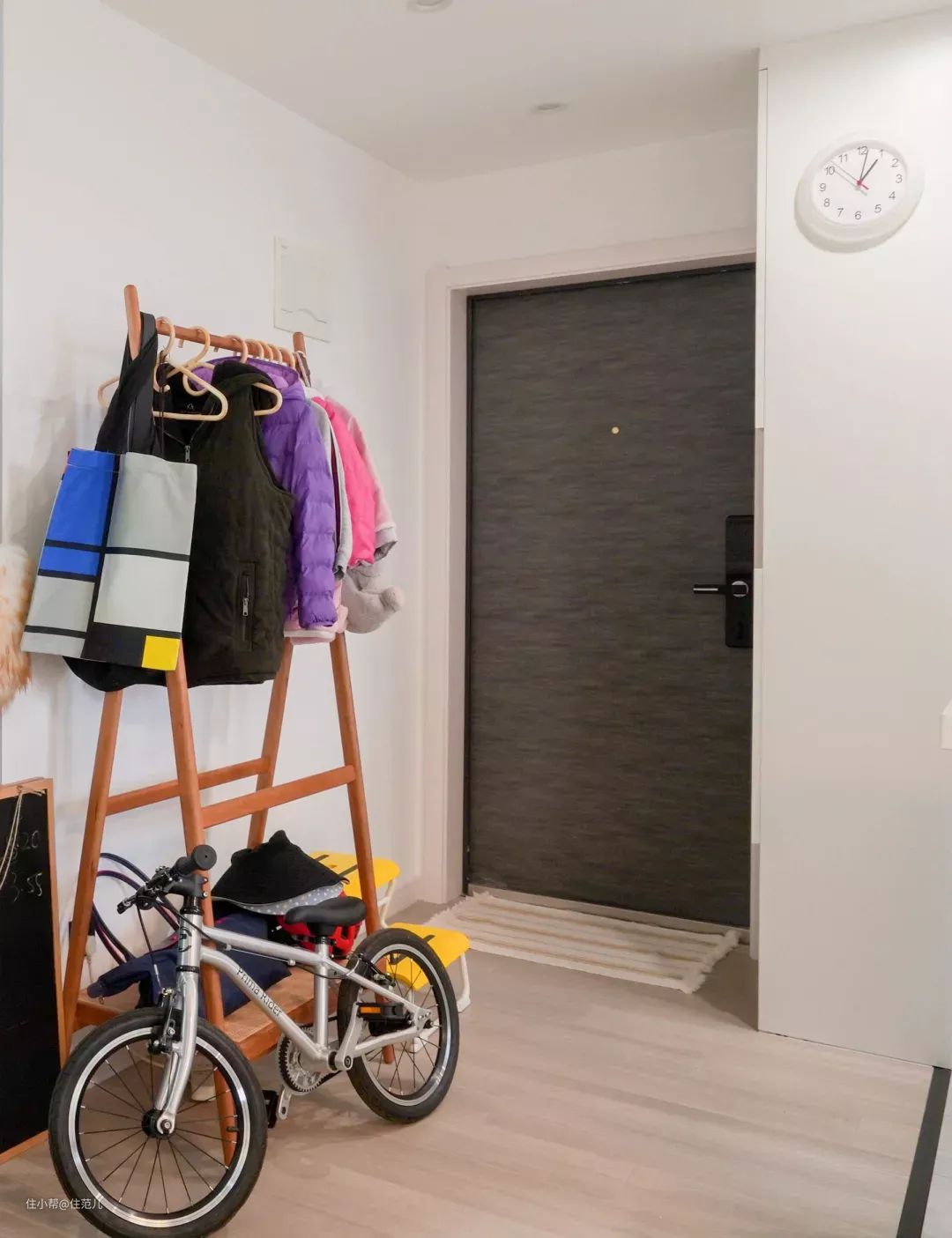 吊杆衣架配玄关凳,一个简易的玄关就完成了。