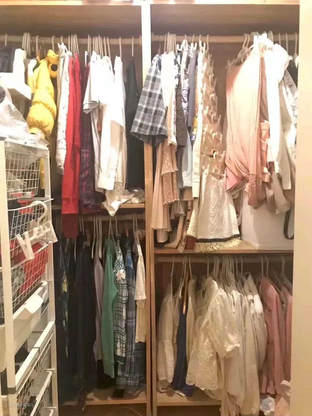 现在是冬天,衣服穿得里三层外三层,又多又厚,收纳也确实苦恼。