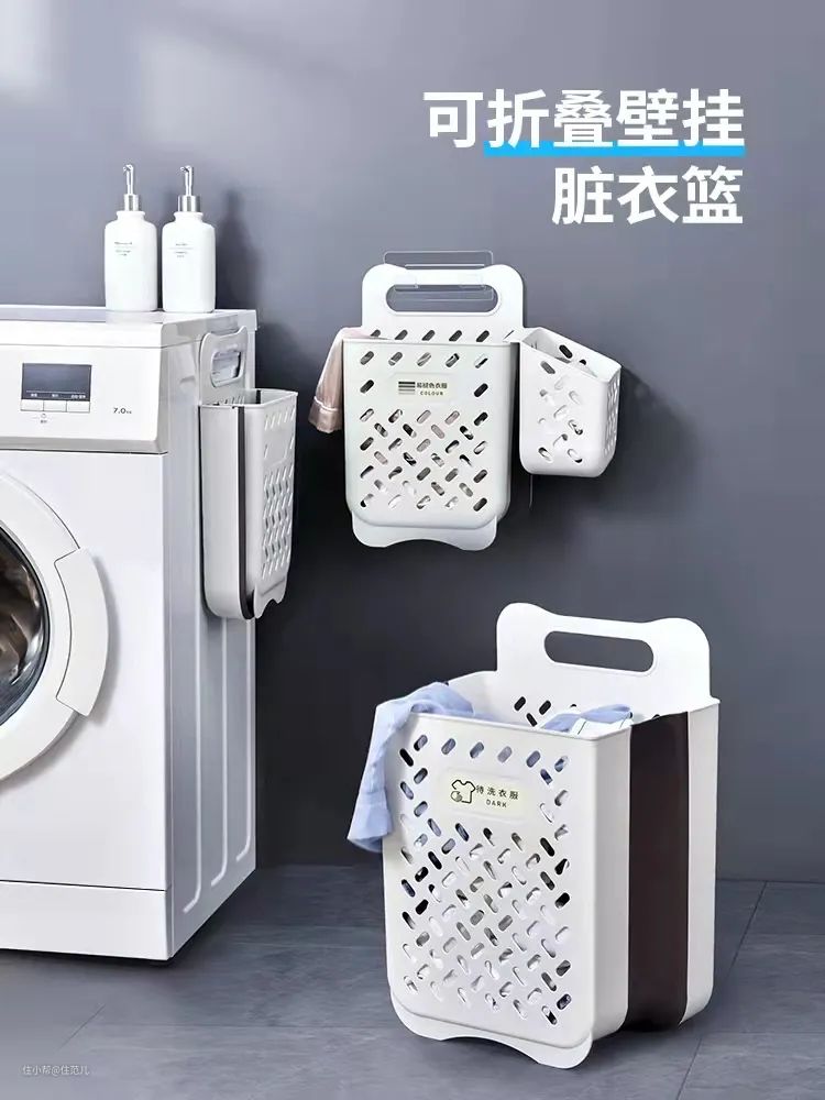 这里更多存放的是脏衣服,建议的原则是立体集成、上墙,不占空间,分类便于清洗。