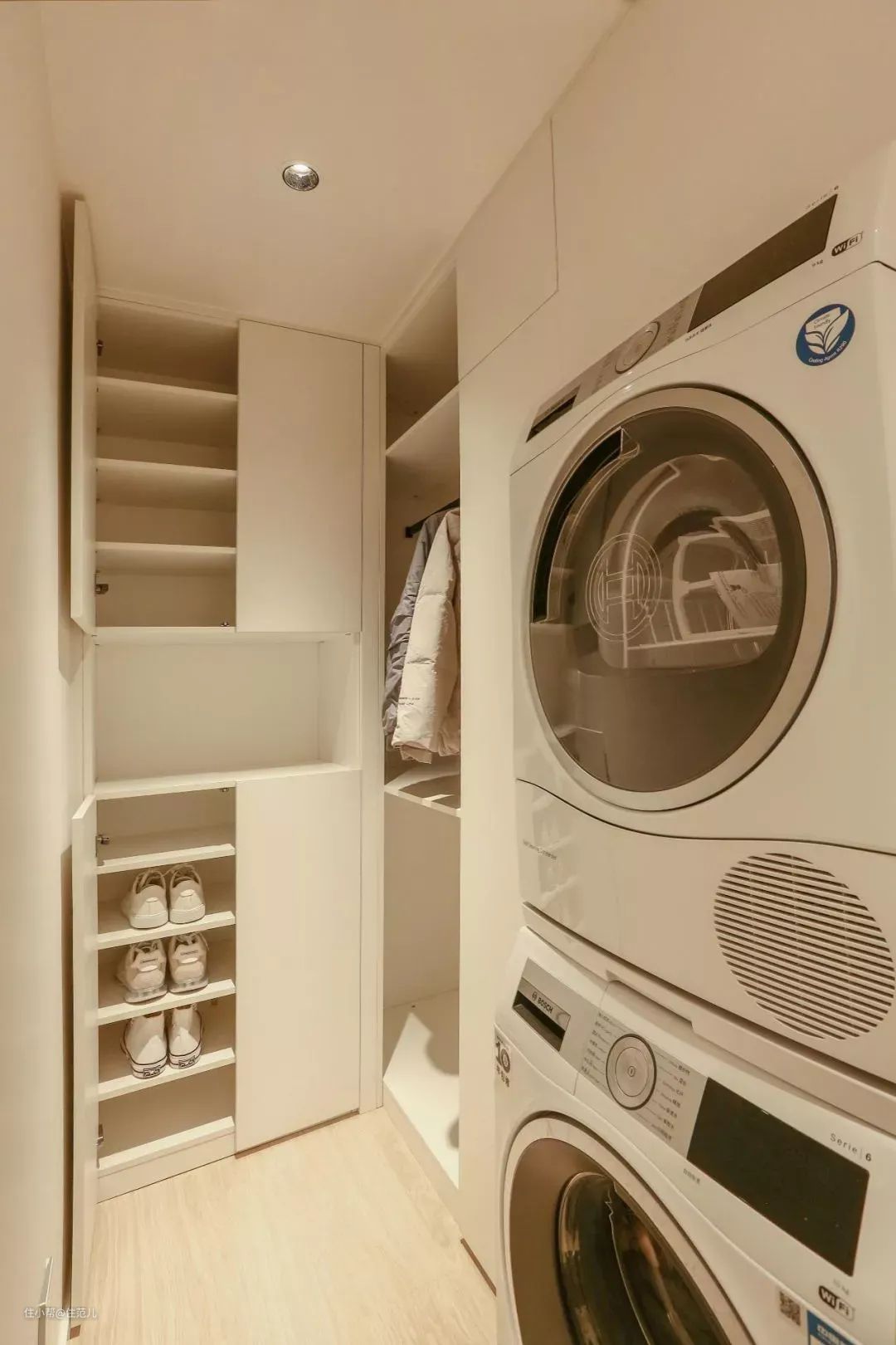 有条件的首选入户衣帽间,越是小户型这个衣帽间的作用越凸显。