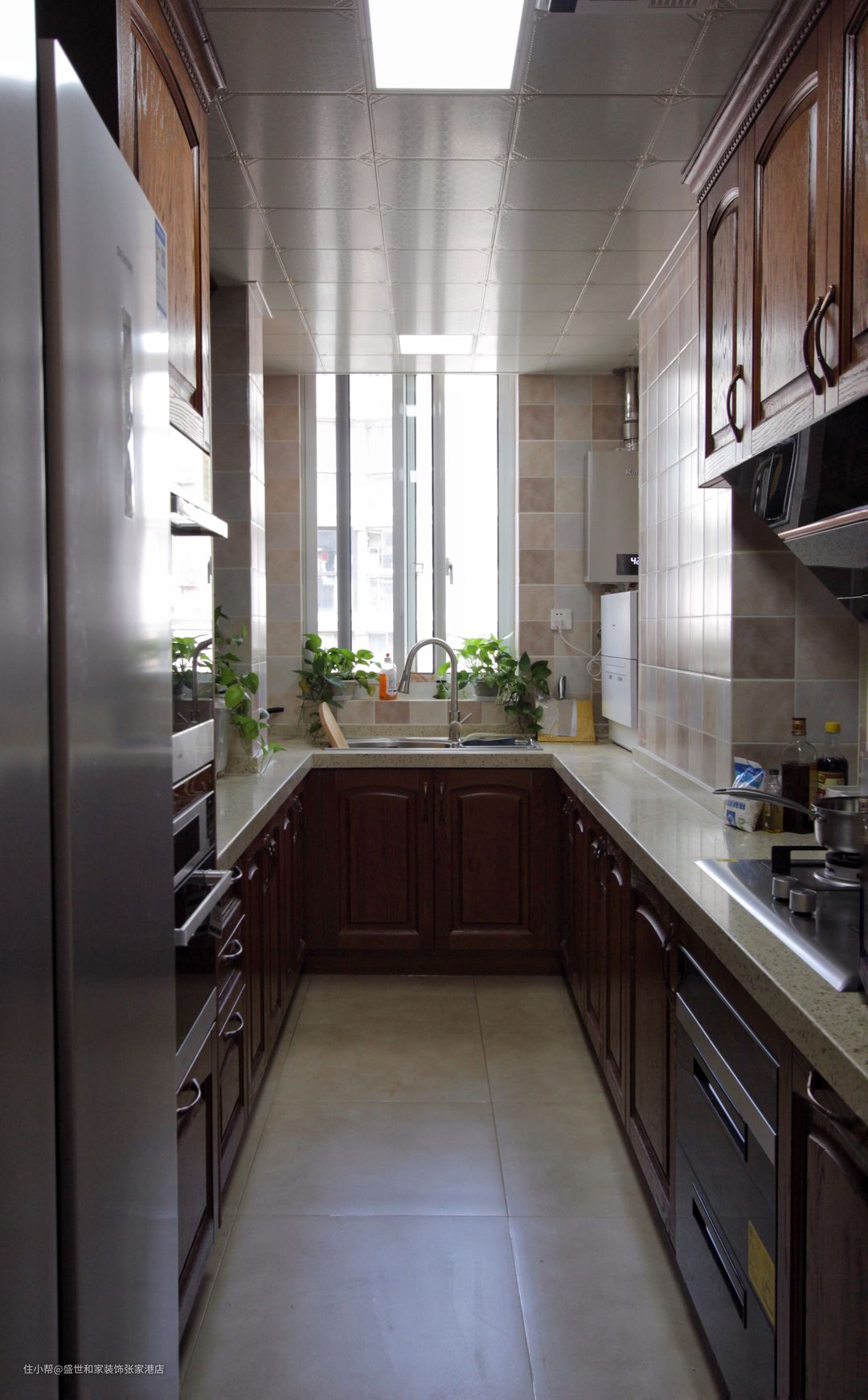 U形厨房格局将空间充分利用,而实木材质的柜门设计,做到与整体风格相统一。