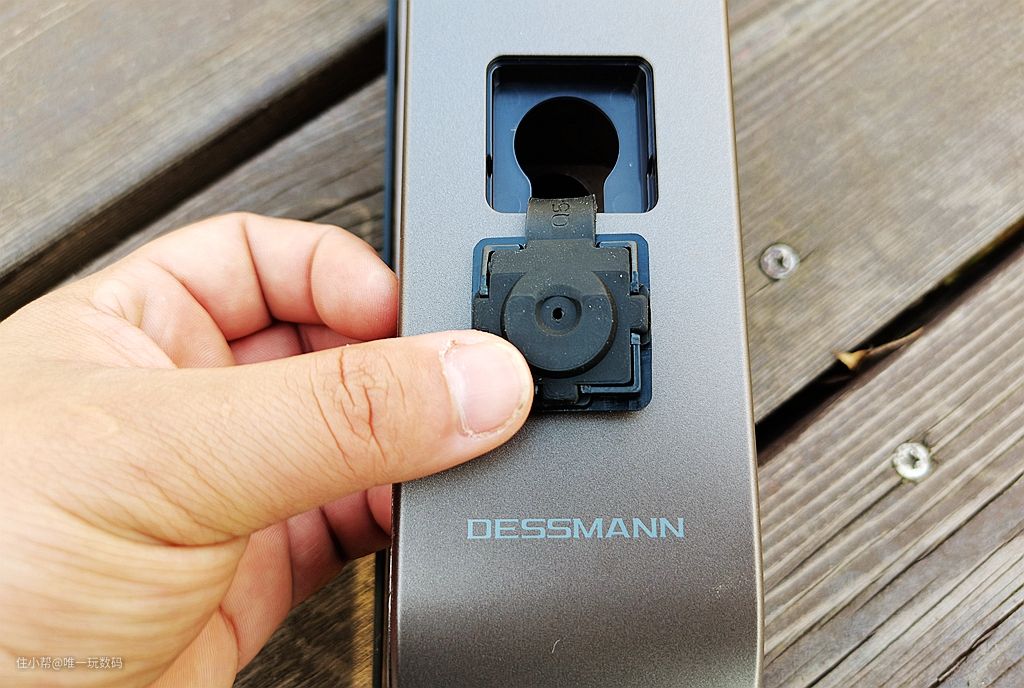 外面板的底部设有Type-C充电口,采用目前最为流行的充电接口。在智能门锁无电源供电时可以使用充电宝进行供电开锁,无惧没电无法进家门的风险。
