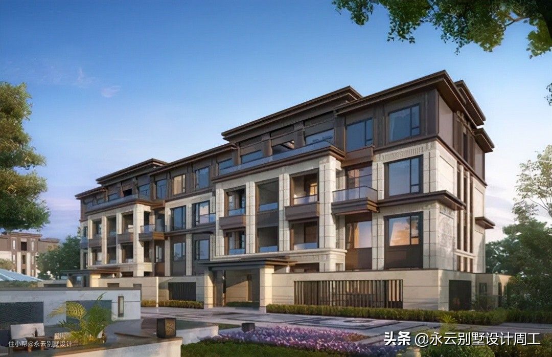 叠拼别墅是由多层的别墅式复式住宅上下叠加在一起组合而成的单栋别墅,一般为四层带阁楼建筑,其外立面造型丰富,不仅增加了欣赏景观的高度、层次和丰富感,而且复式结构也使家庭的功能空间得到了很好利用。
