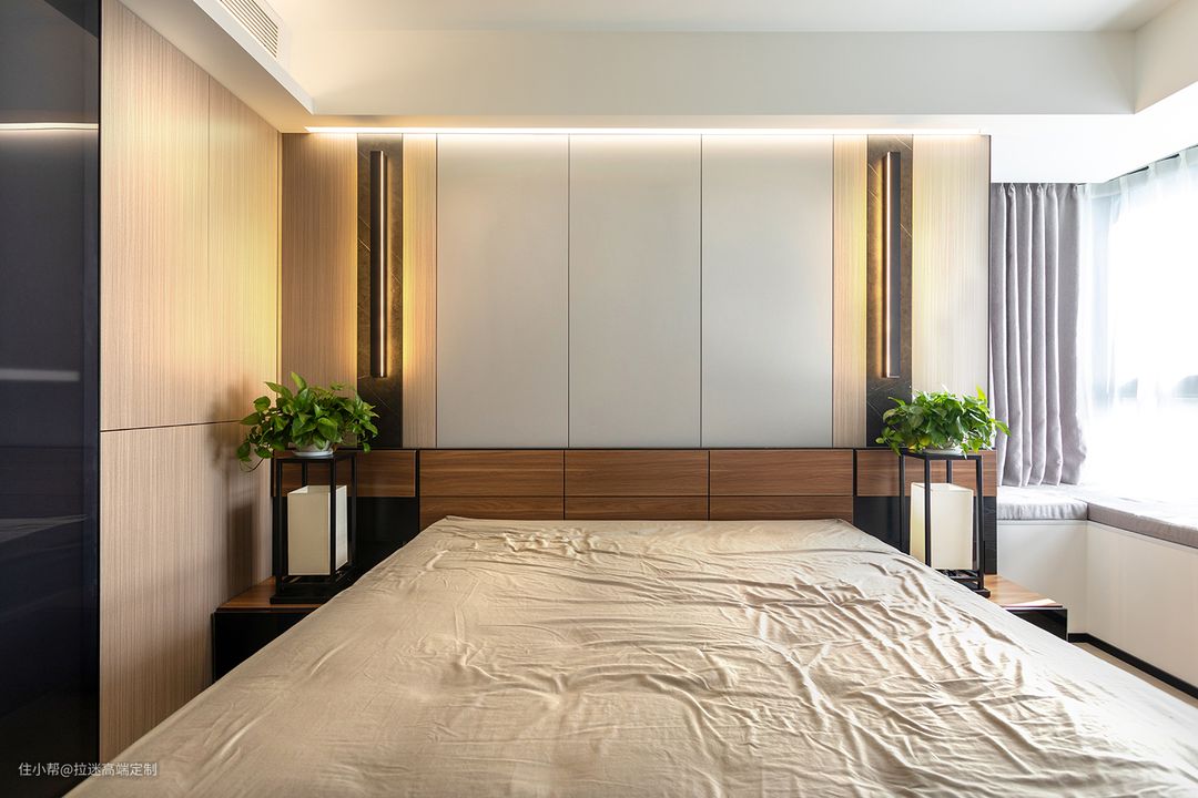 床头装了这里也有大面积的窗户,明媚的阳光从百叶窗的间隙溜进来,充沛的自然光线让卧室变得明亮而又舒缓。床头的微光,给夜晚的卧室增添一份温馨。