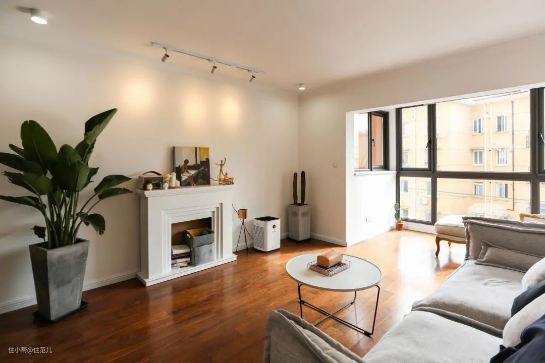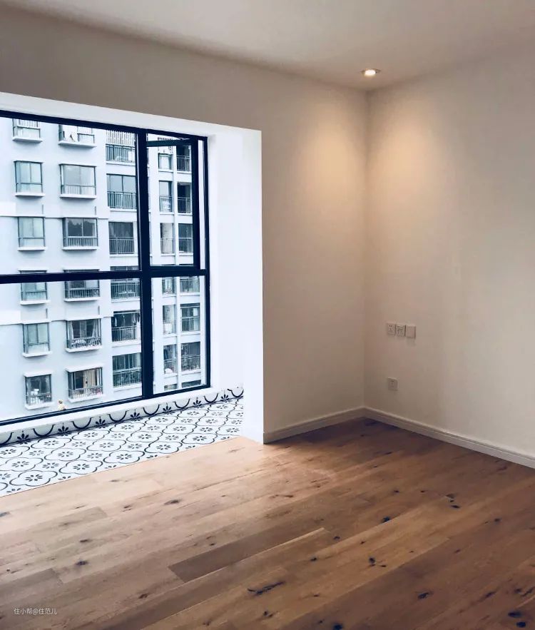本来把阳台和客厅打通,再把阳台封起来就是为了让屋子显大一点,结果屋内铺木地板,阳台铺瓷砖,又分成两个空间了。