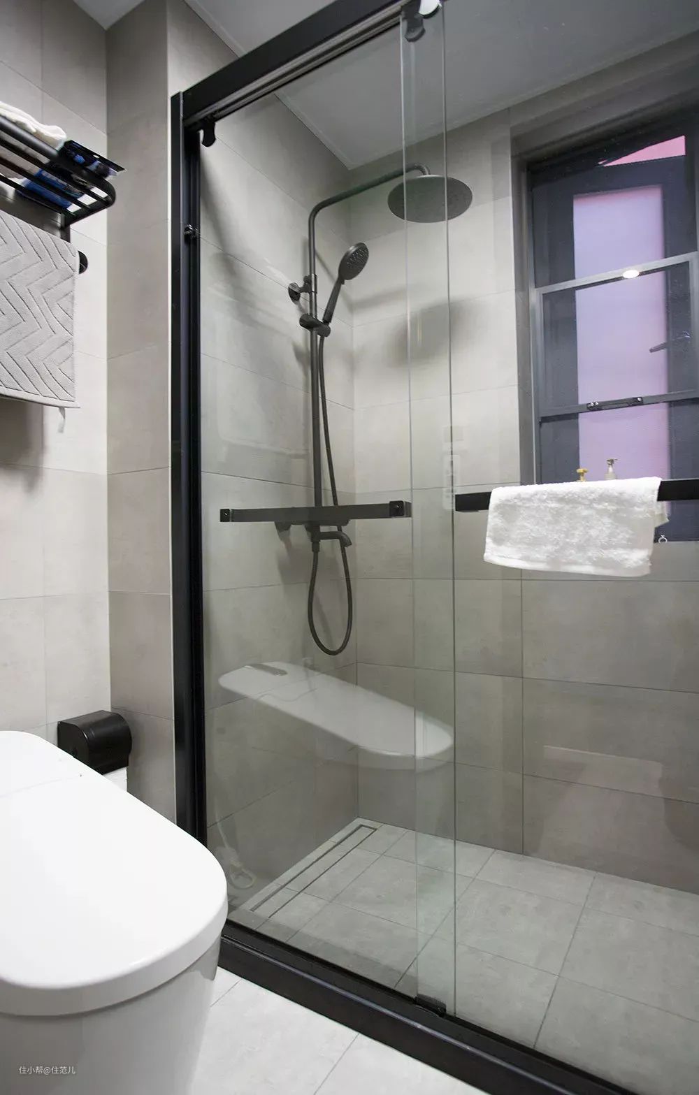 一般卫生间会预留一扇窗户加强通风,前面的小窗台可以随手放一些洗浴用品。