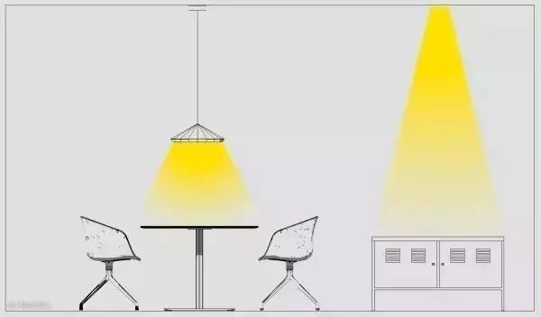 如果兼具写字台功能,灯光还可以再亮一些,餐边柜正上方布置1~2盏3W射灯。