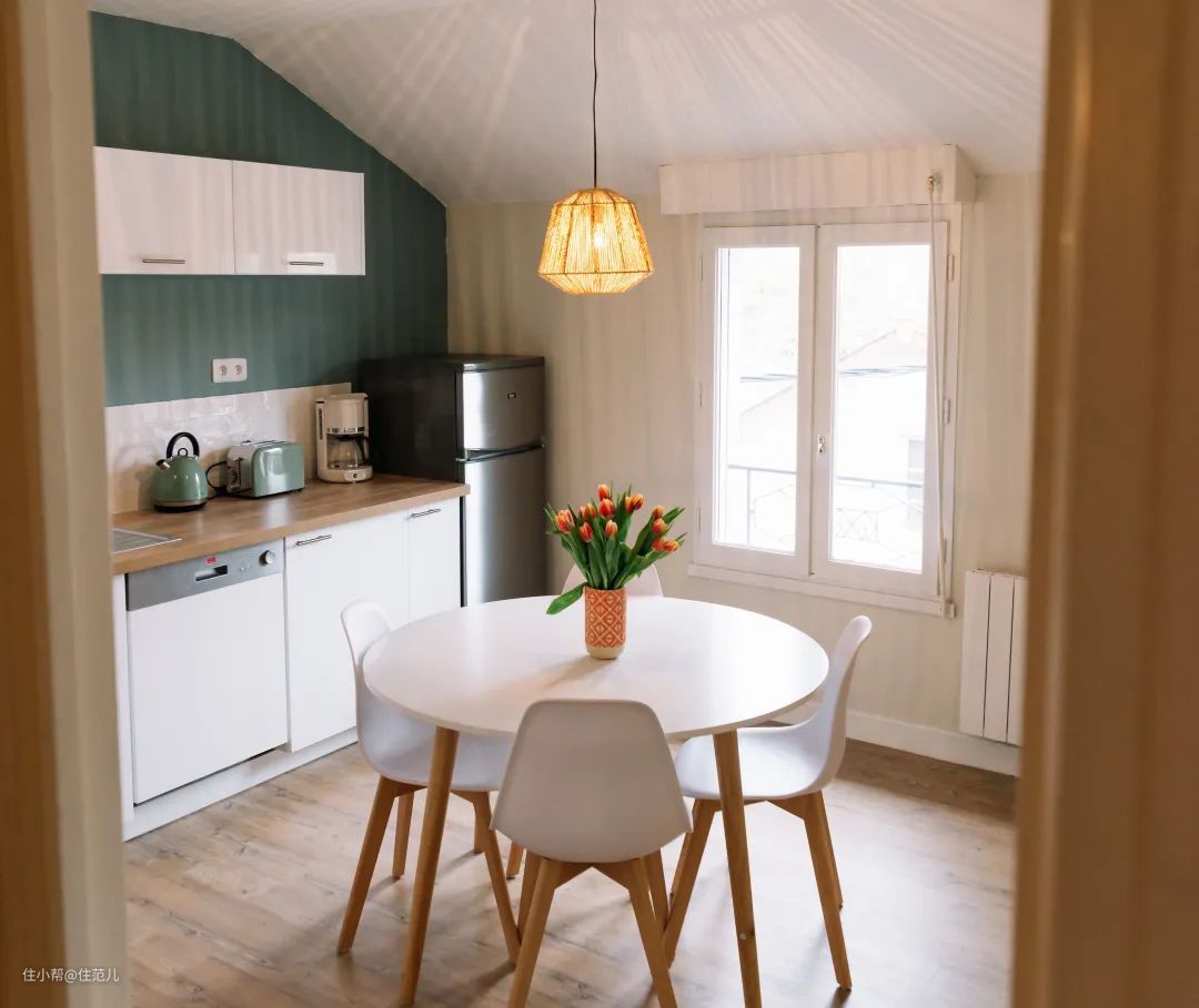 如果你家是小户型,餐桌只能见缝插针,而且可能位于夹角、过道等位置,那可以肯定的是:除了圆桌别无他选!