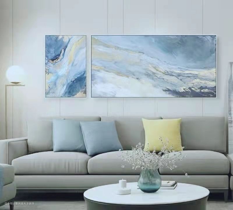 若是悬挂多幅组合的挂画,画与画之间保持5-12cm的距离,画作尺寸越大,间距则更大。