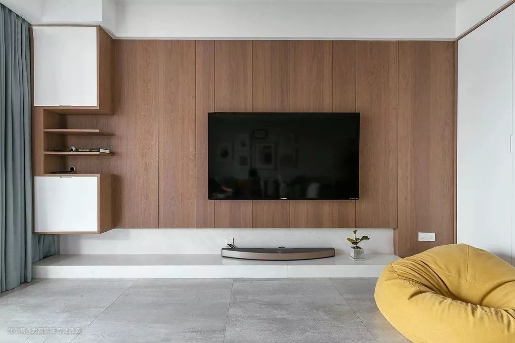 花了重金装的电视墙,就是图个好看,过了几年说不定还过时了,真的不实用,如果光秃秃的墙面只放个电视,不仅单调,对空间也是一种极大的浪费。其实电视背景墙上的巨大空间,可以充分利用起来,并且可以做到美观。