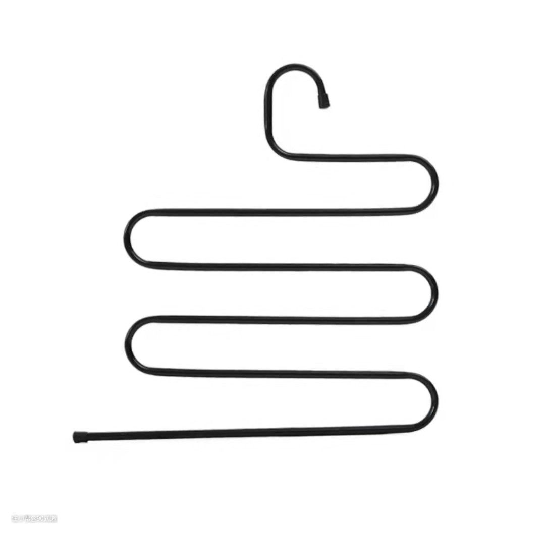 可以挂满四五条裤子的S型多层裤架,虽然能节省不少空间,可事实上挂满了裤子的裤架本身又沉又累赘,除非你不取裤子,不然每次拿一条裤子,就要拿起整个架子,又重又不方便取下来。