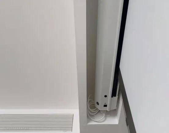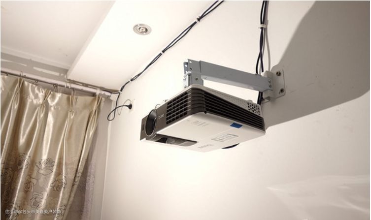 客厅投影仪一般都是通过吊架安装在天花板或者墙壁上,所以需要配备一个电源插座,走线的话可以走明线也可以走暗线,明线就是外露在外面,虽然有点乱乱的,但是安装起来方便,适合精装修的小伙伴。