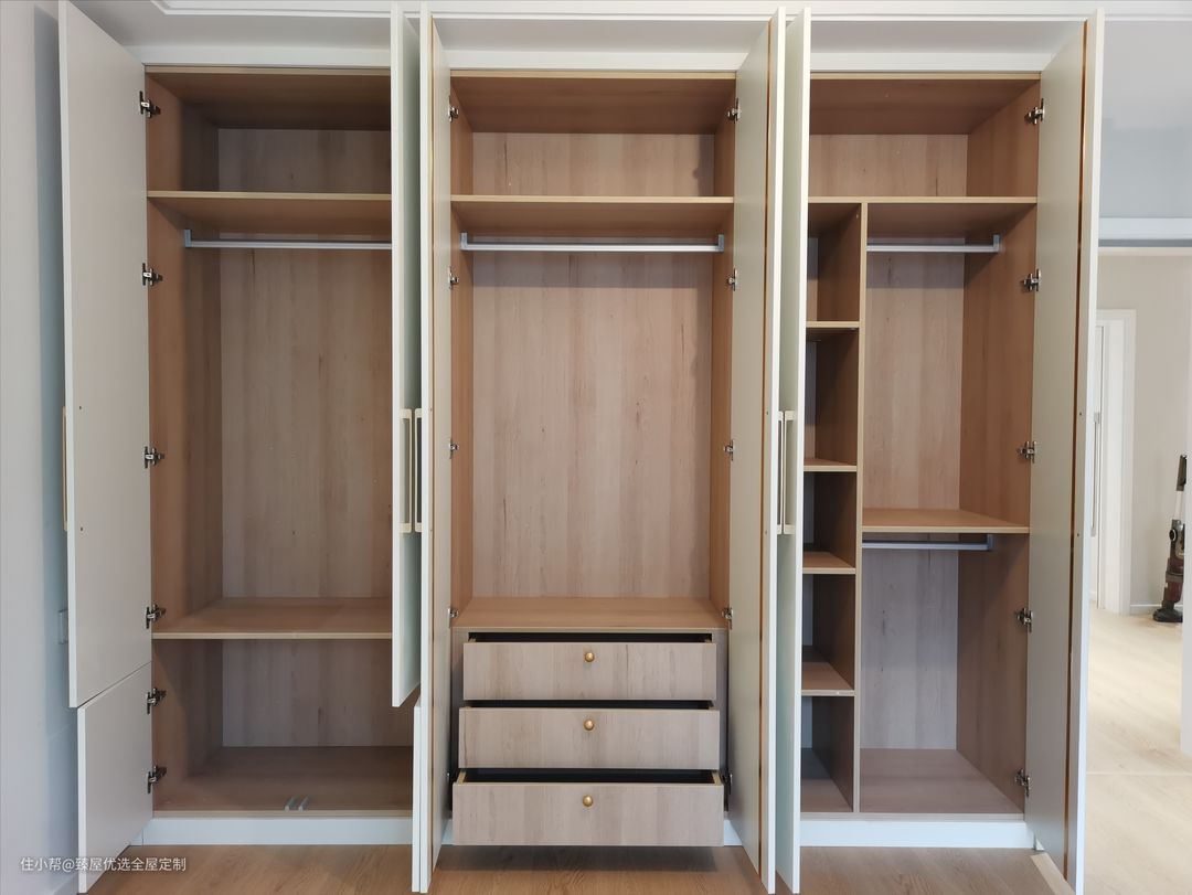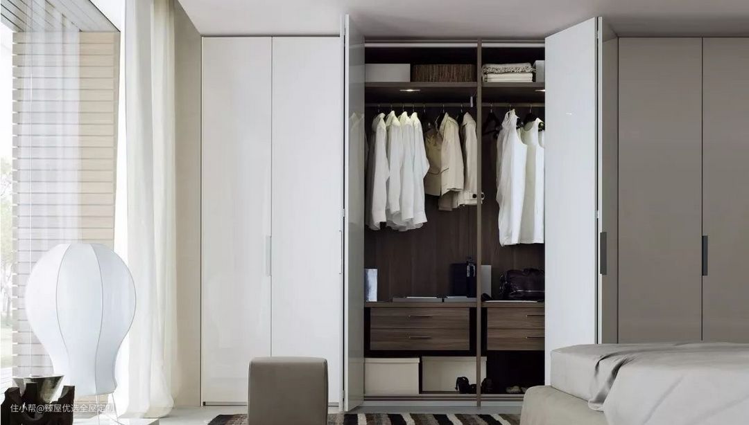 (2)衣柜的开合方式:一般柜门开合方式有3种:推拉式、平开式、折叠式,小编建议您根据房屋的大小来决定。
