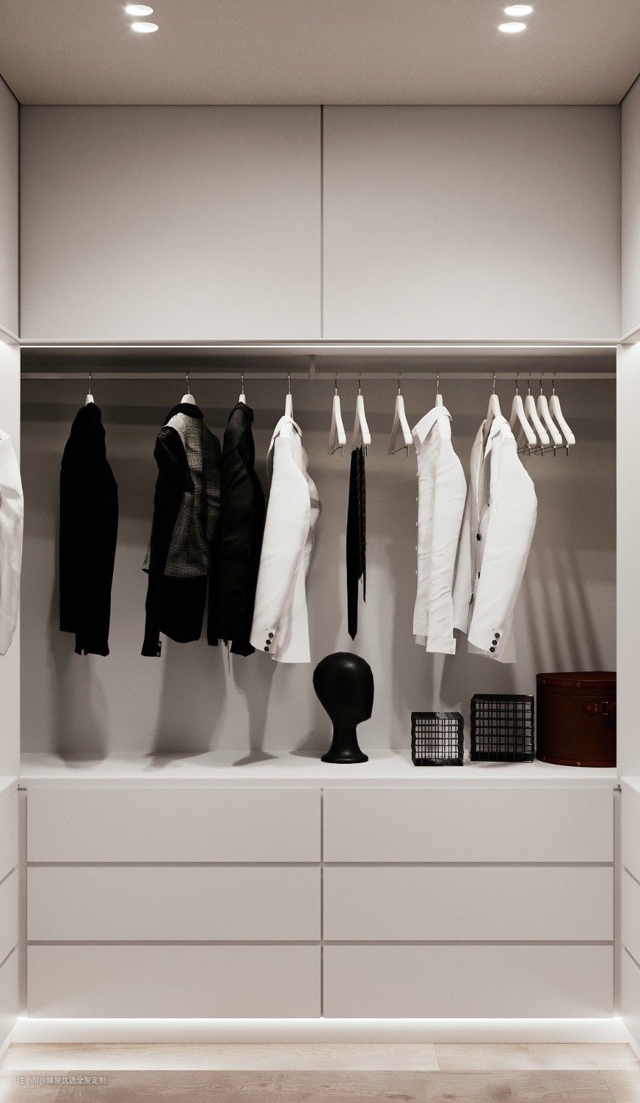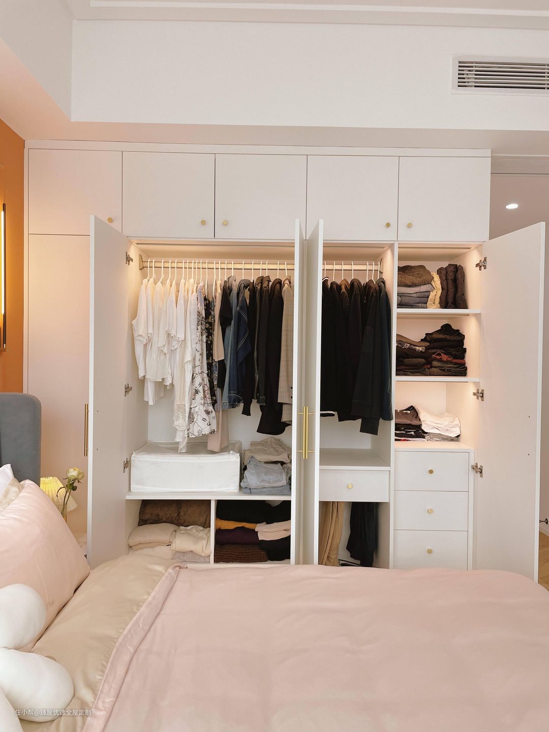 (5)适当留白:当然,衣柜也要做适当的留白,这种留白设计也方便后期的调整。如果全部堆积在一起,反而不利于衣物的收纳,看起来凌乱又不好寻找。