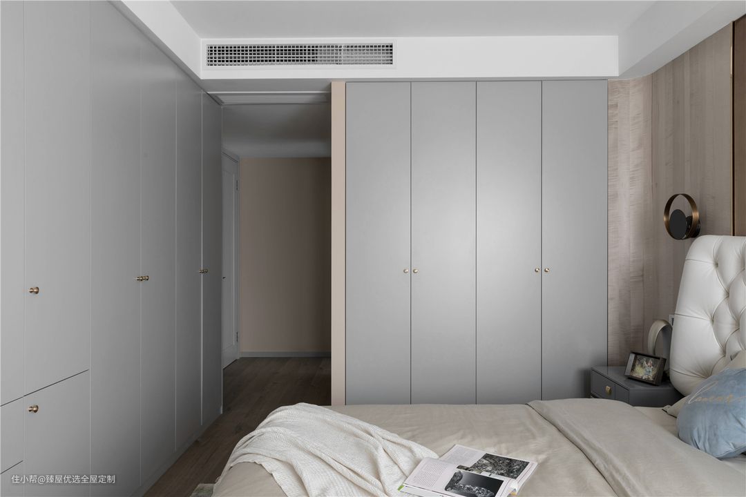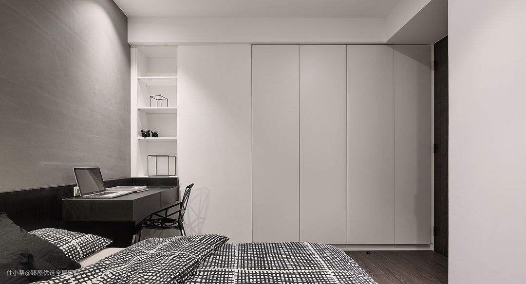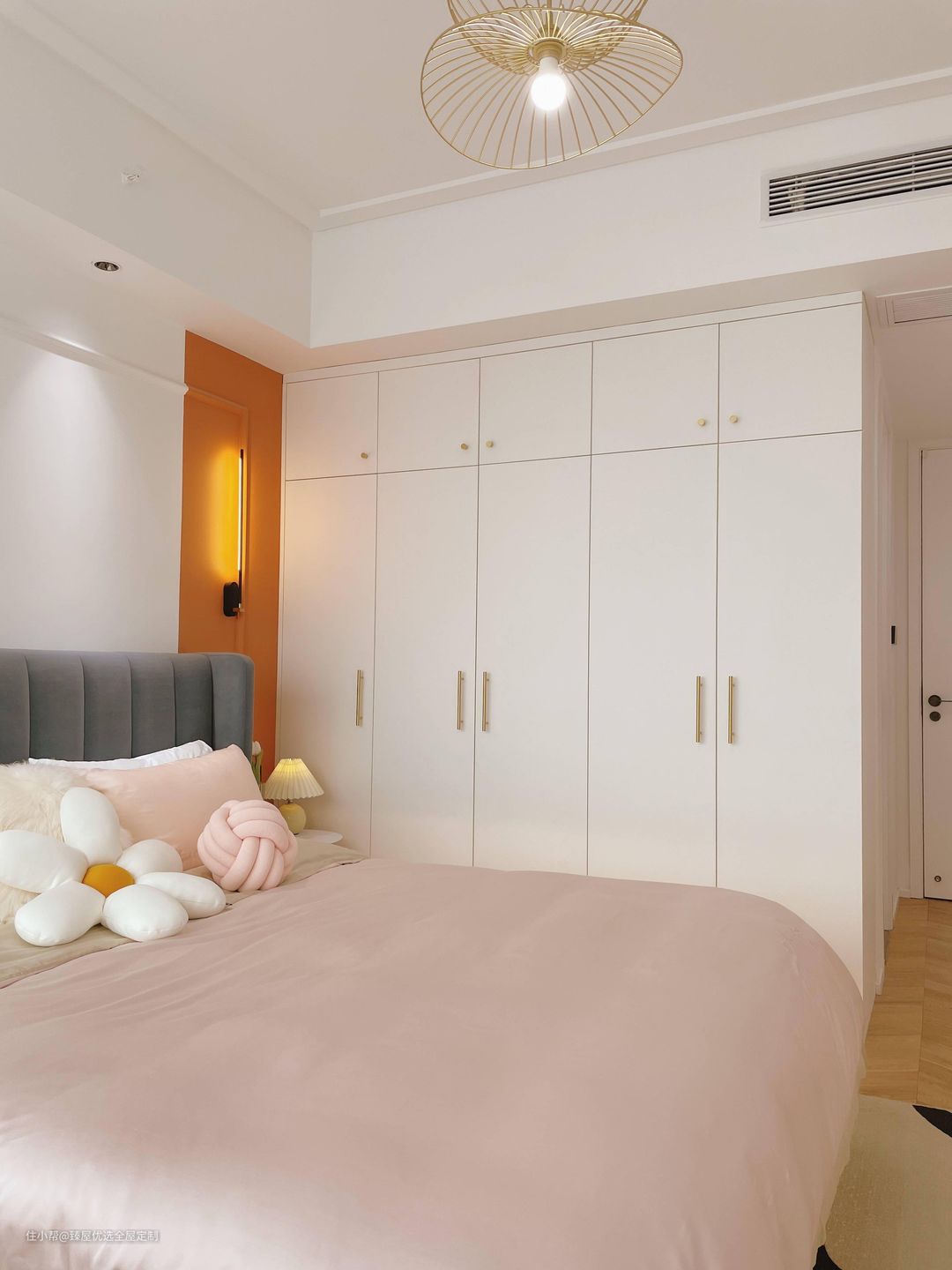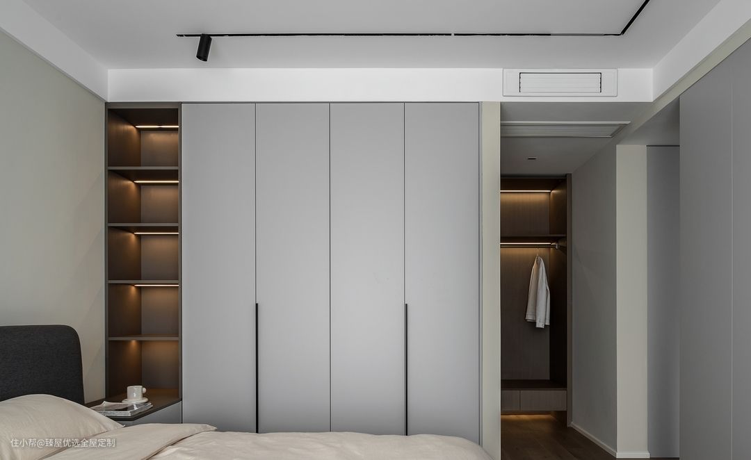 (3)衣柜做通顶造型:衣柜一定要做通顶,可以拥有更多储物空间,方便以后的收纳;而且通顶设计不容易落灰,省去了打扫的烦恼;在视觉上,看上去也更美观,达到室内统一的效果。