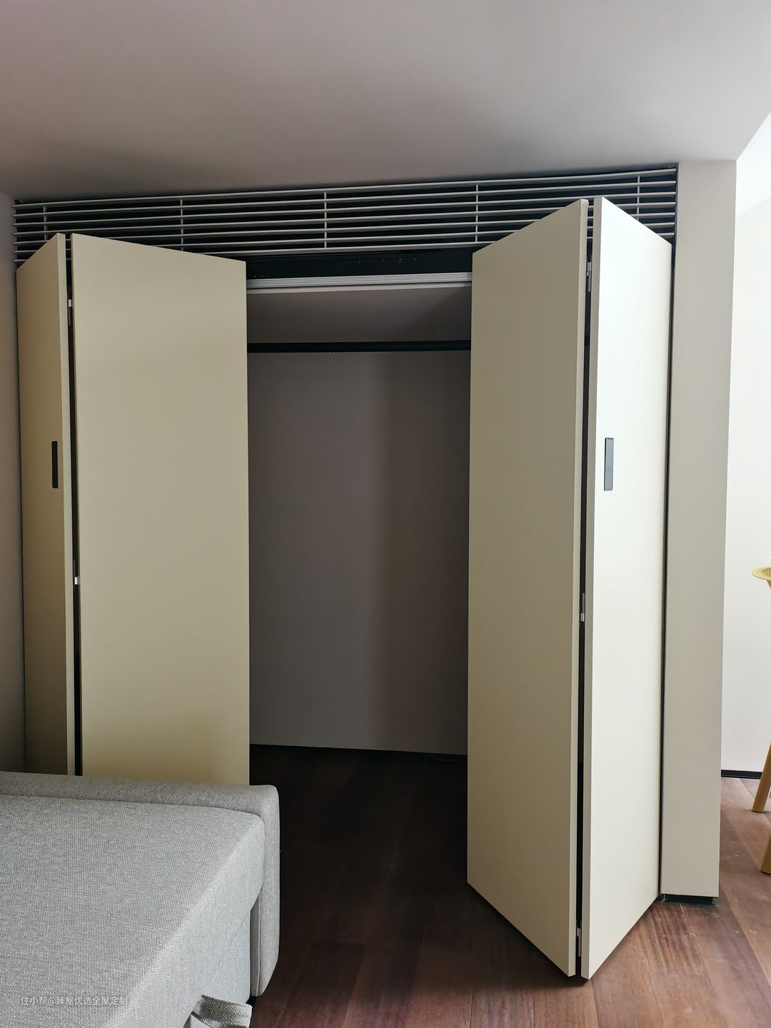 折叠式:这种设计更像是推拉门与平开门的结合体,完全打开像是平开门,但是又需要用到推拉轨道。它的开启空间更大,且占用空间更小,外观更美观,更适合对品质有要求的精英人群。