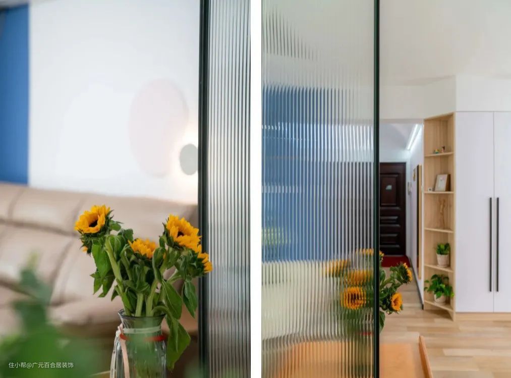 和平常的全透明玻璃相对于,长虹玻璃的外表看上去有点儿模糊,可以具备半遮挡功能,与此同时又可以维持空间的通透性。