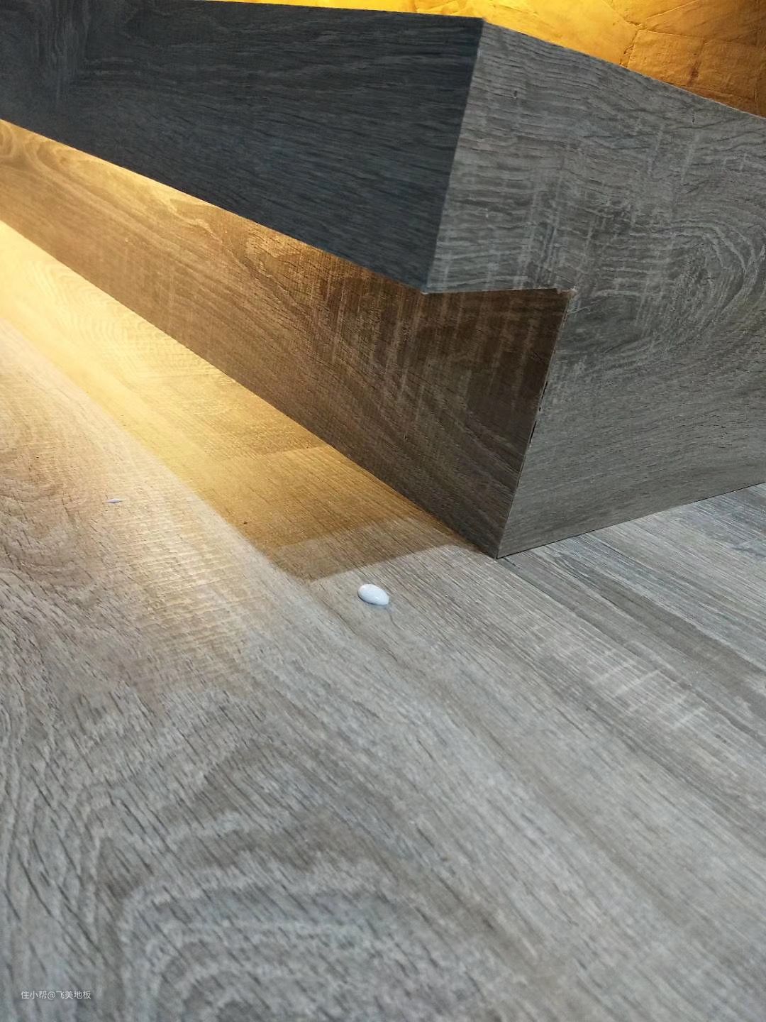 注意!平面和立面边沿处,不使用传统的扣条,而采用纯手工打造45度对角拼接。这个手艺非常复杂,很多品牌都因为工艺达不到拒绝安装!当然,这对飞美地板的工匠们来说,是小菜一碟啦!