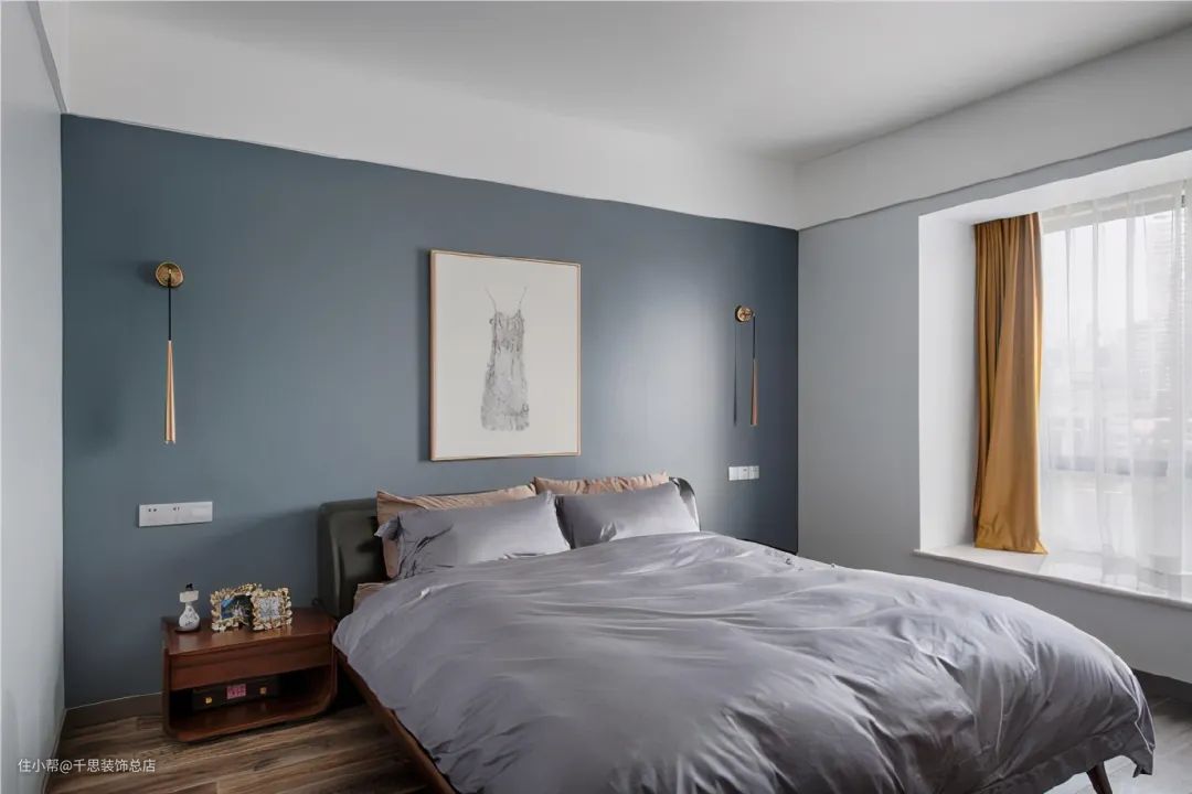 蓝色的墙面是很多屋主的选择,宁静而又优雅的蓝色调给家里带来了一些小清新的感觉;蓝色当中加入一些灰色,或者是选择更为深一些的蓝色,可以带来完全不一样的体验,更具静谧、悠闲的感觉。