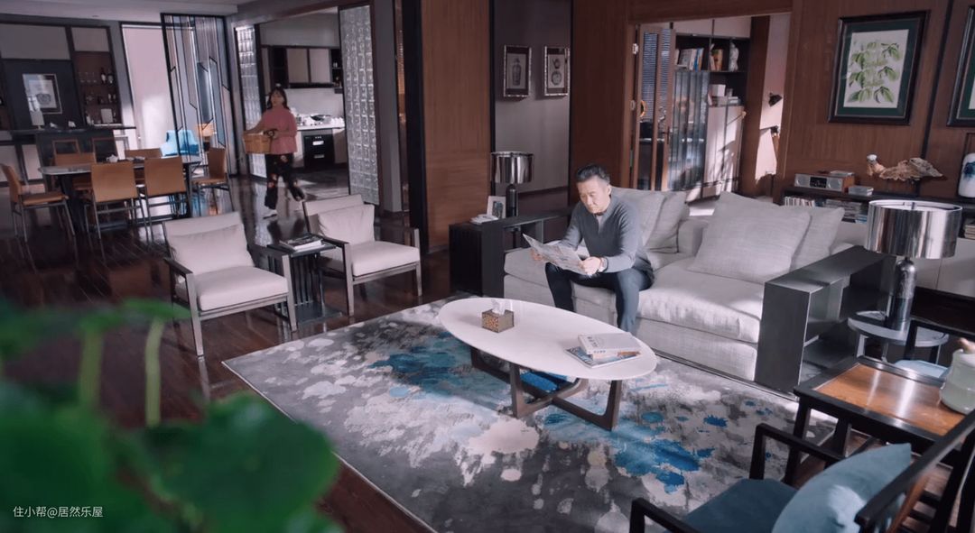 林满江在剧中,是中福集团的董事长,是国企副部级领导干部,他家整体风格偏向新中式,对于林满江这种形象来说,含蓄内敛的新中式风格是最适合不过的。