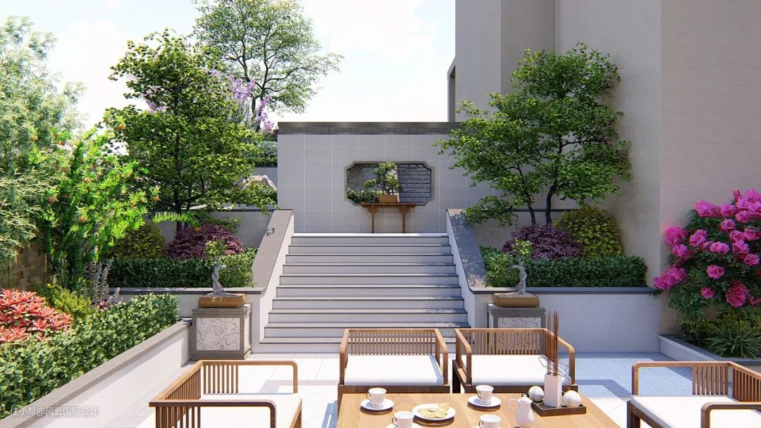 利用矮墙,将庭院形成下沉感,易接近的阶地,种植植物和花卉,起到绿化和美观作用。