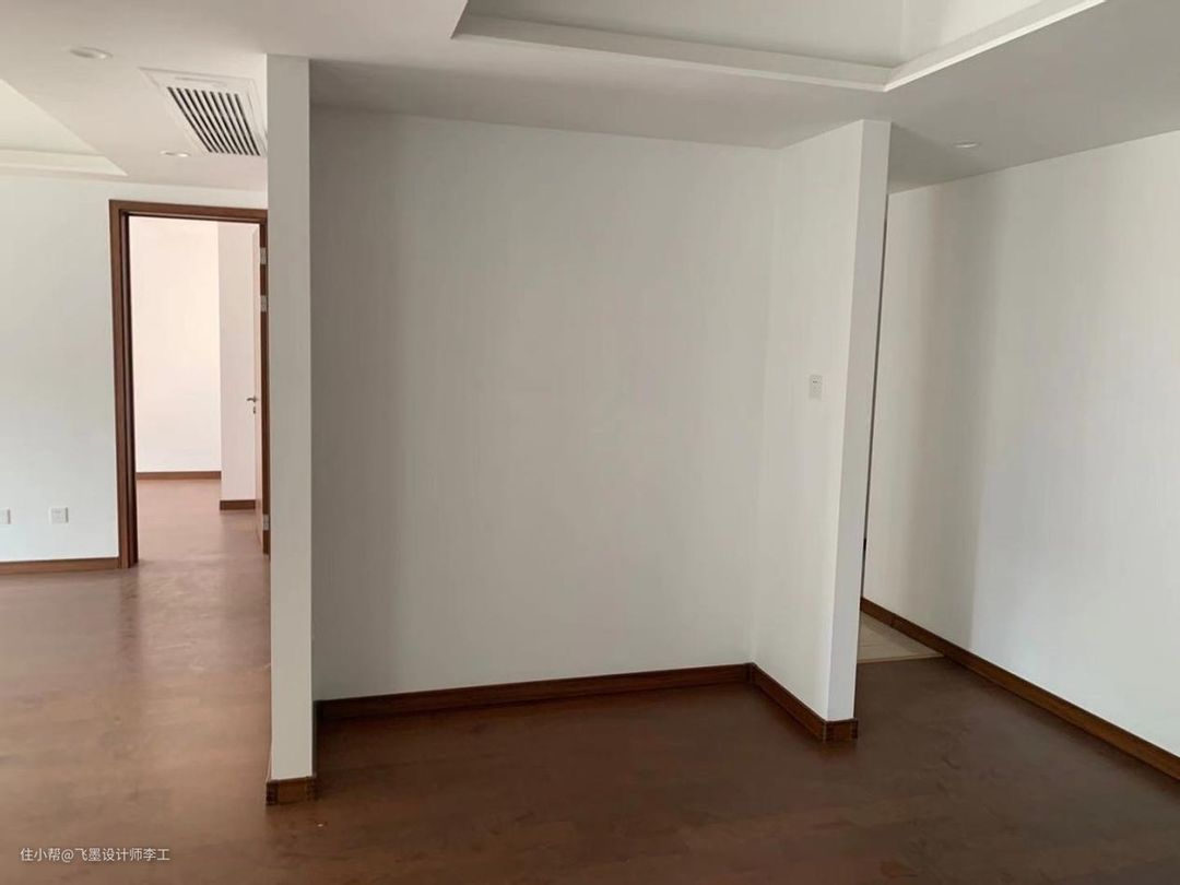 先来说一下这家的基本情况,这是一套精装房改造项目,入户无玄关,并且入户门的左侧有一条长走廊联通卫生间的。考虑到隐私和户型的问题,设计师先是倾听了业主的想法,然后给出满意的解决方案: