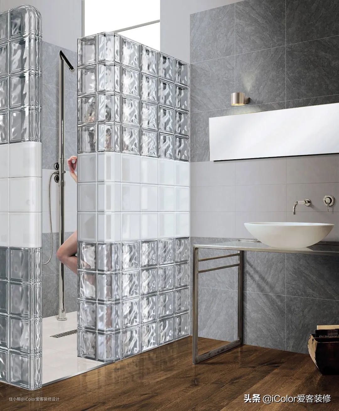 有人担心玻璃砖是否能保证洗漱时的隐私性,实际上是不用担心的,因为玻璃砖表面有凹凸的纹理,是基本上无法看清楚内部人员活动情况的。