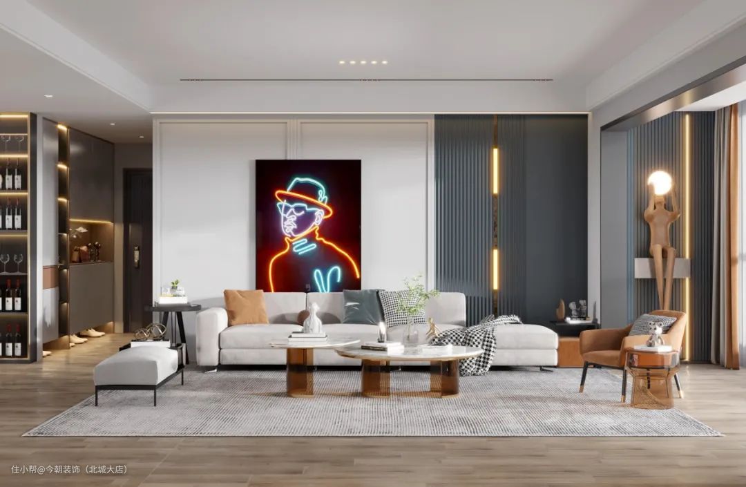 原本碍眼的梁体,加入暗藏灯带或是组合吊灯后,让横梁成为室内装饰与照明设计的一部分,提升空间的设计效果与独特气质。