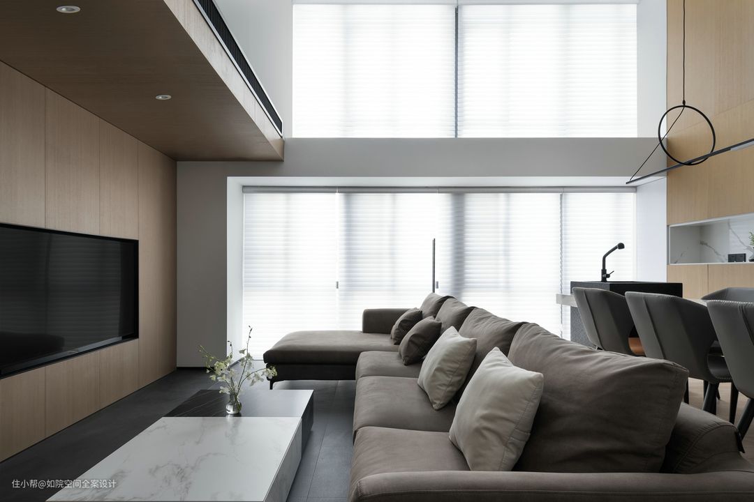 loft户型,一般上层空间比下层空间光线更足一些,长条形的户型则采光更差一些。需要善加利用墙体或者镜面增加反光,落地玻璃窗也能改善房屋的采光条件。