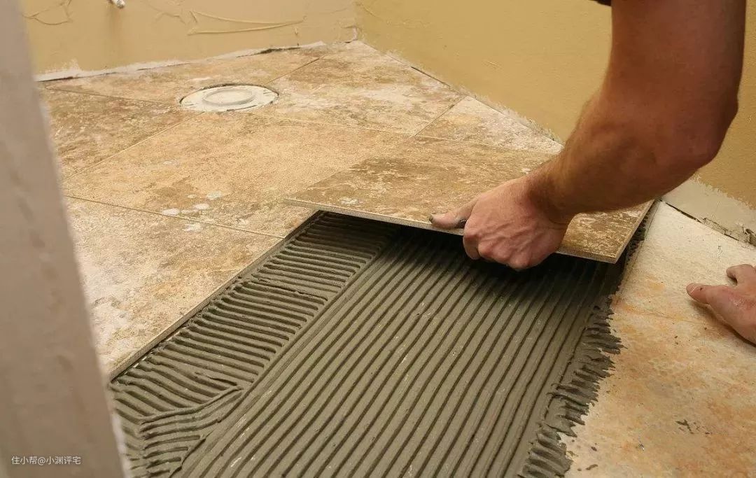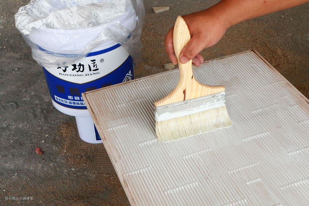 注意了,只有瓷砖上墙,才需要用到背胶。至于地砖,无论尺寸有多大,无论吸水率有多低,都是可以直接用水泥砂浆铺贴的——因为它的重力向下,即使粘合力没那么高,也不会脱落。