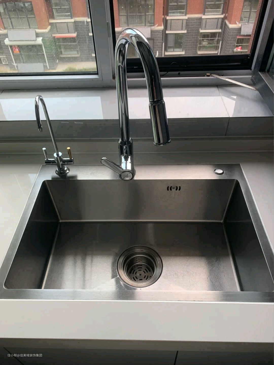 4、选一体成型的不锈钢水槽,配套水龙头,更美观实用