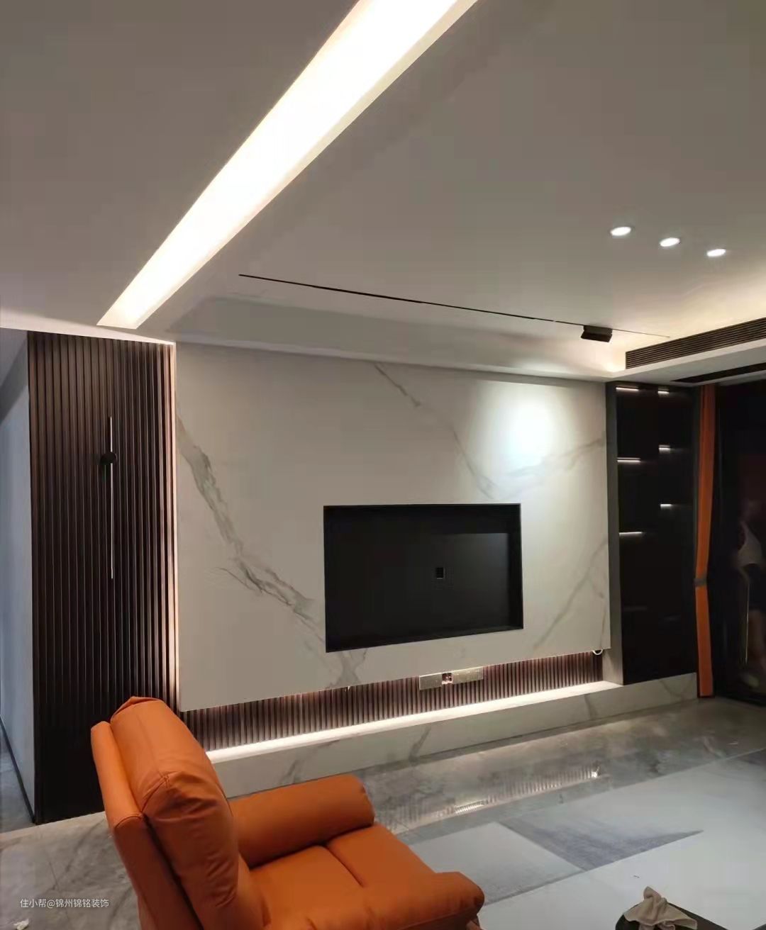 3.岩板悬空造型搭配木作储物柜,提升客厅层次感。