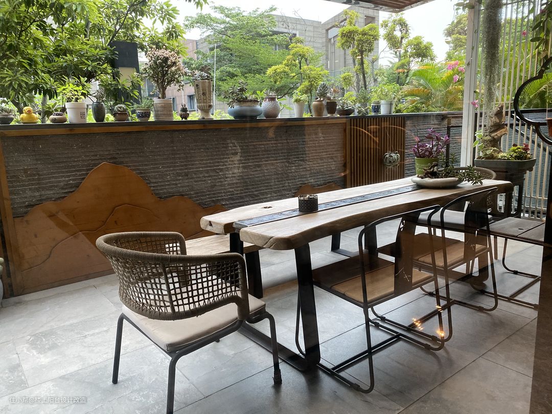 别墅露天阳台一半做茶室一半露天休闲,把空间用到极致!!
