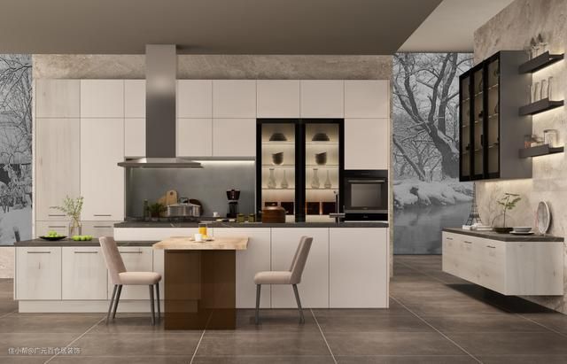 一个现代化的厨房,更少不了岛台。岛台我觉得就是在厨房一个橱柜台面,一般来说全是连接着橱柜或是与餐桌一体这样的设计。