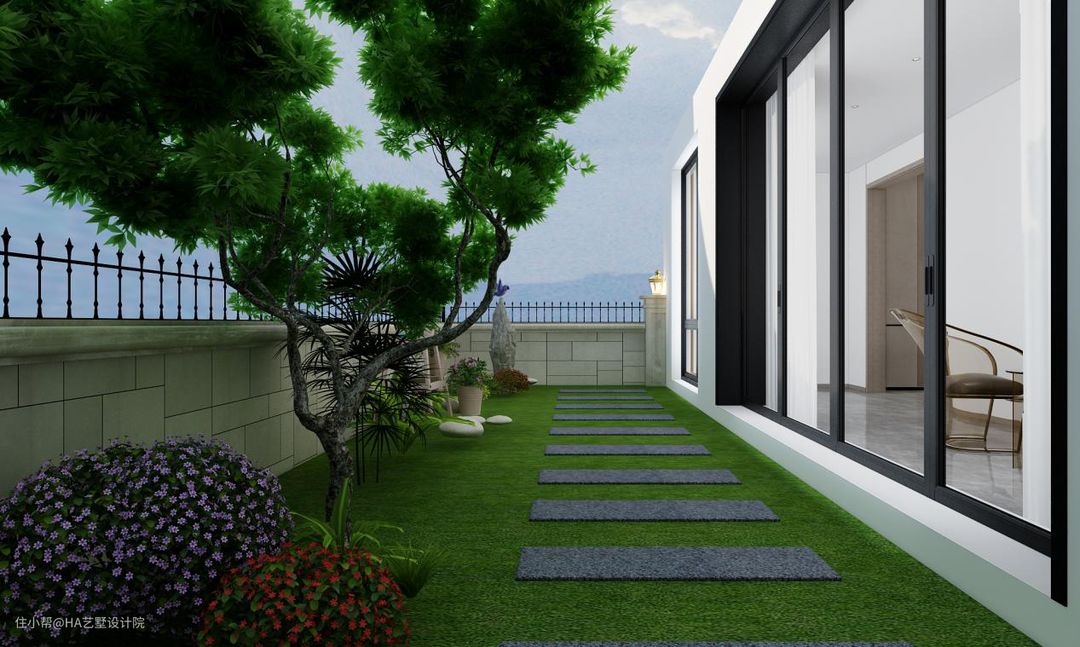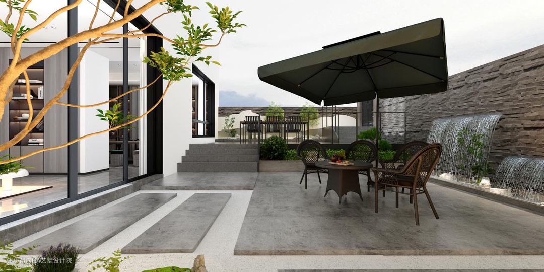 拉开一楼推拉门映入眼帘的便是一处露天阳台,阳台面积 很大,拥有足够的娱乐空间,地板设有排水区,阳台不会产生积水,而且设计美观大方。中部设有一处乘凉座椅,业主可以邀请三两好友,在炎炎夏日一起聊天打牌,不亦乐乎。