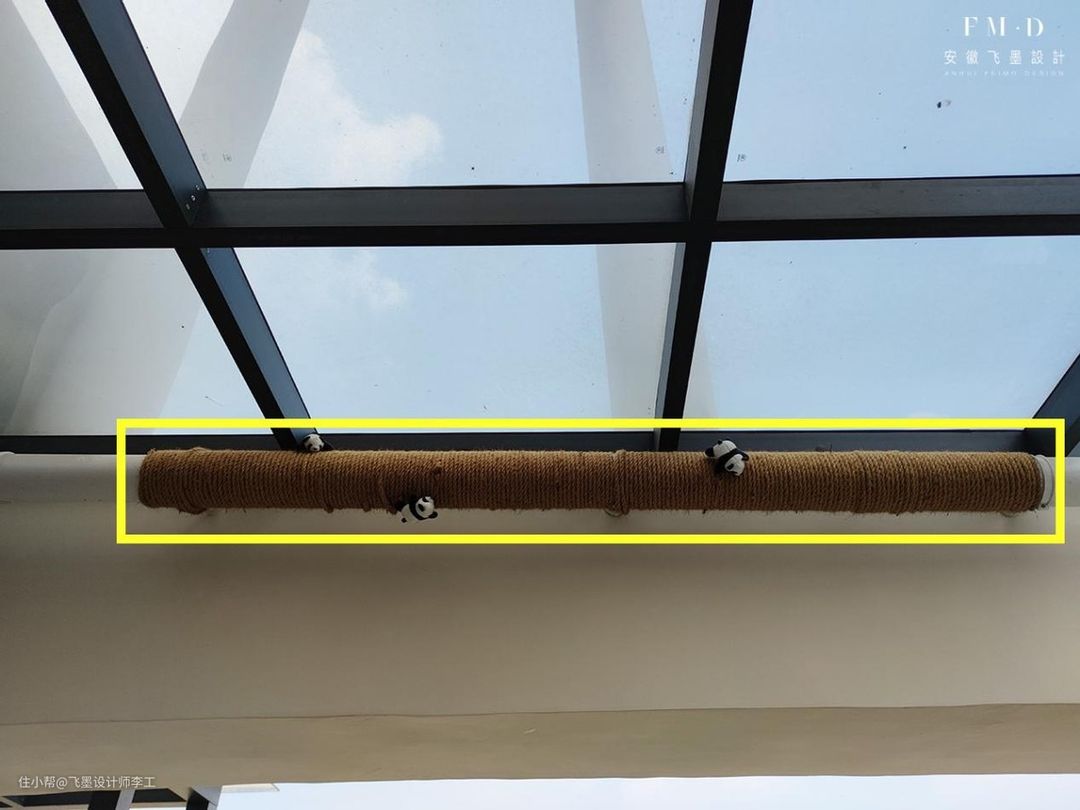 如果你问下雨天怎么办呢?问就是上面有玻璃顶,下雨天还能坐在下面赏雨呢,为了避免头顶的管道很碍眼,设计师还用麻绳将管道全都裹起来,上面放几只玩偶,立马就有趣多了!