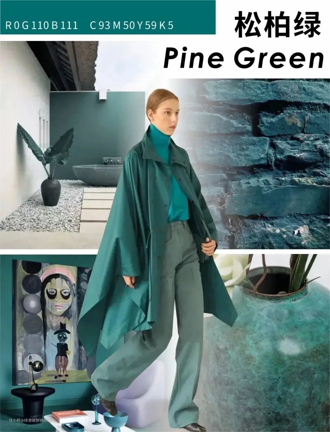 松柏绿介于青色与绿色之间,拥有来自大自然的旺盛生命力,高贵而深沉,通常用于营造低调而不失质感的复古氛围。